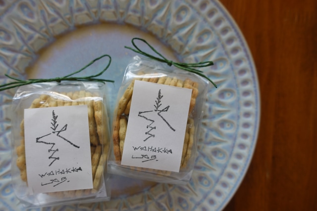 滝上町産和ハッカの乾燥葉と小麦粉きたほなみ、北海道産のバター、牛乳、米油を使って作りました。ハッカ感が控えめで、サクサクとした軽い食感なので、ハッカ初心者の方におすすめです。 ハッカレベル ★☆☆ ■商品名 和ハッカビスケット ■名称 焼菓子 ■内容量 20枚 ■原材料名 小麦粉 (北海道滝上町産)、片栗粉(北海道産)、無塩バター(北海道産)、砂糖(北海道産)、米油(北海道産)、牛乳(北海道産)、スキムミルク(北海道産)、食塩、ハッカ乾燥葉(北海道滝上町産)、/膨張剤 ■アレルギー表示対象品目 小麦、乳成分 ■賞味期限 製造から1ヶ月 ■保存方法 直射日光・高温多湿を避けてお早めにお召し上がりください ■製造者 (株)滝上町和ハッカ・ラボ 北海道紋別郡滝上町字滝ノ上原野21-7 ■製造所 北海道紋別郡滝上町字滝上原野1169-23 ■栄養成分表示(1包装当たり) エネルギー:242kcal、たんぱく質:3.3g、脂質:11.2g、炭水化物:32.7g、食塩相当量:0.4g ■お届けまでの時間の目安 ご入金確認後7営業日以内で発送予定。